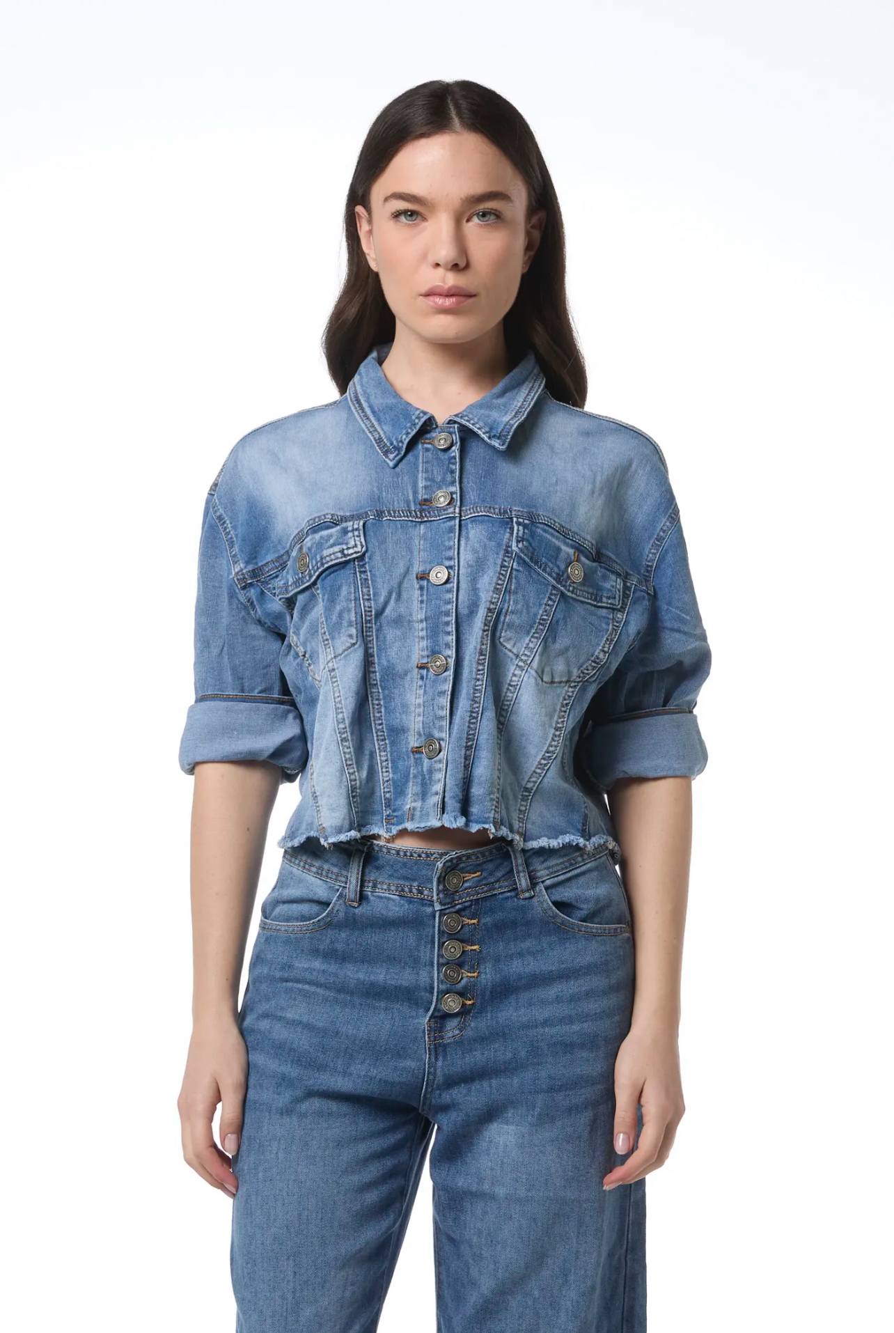 - jean μπουφάν κροπ με κουμπία